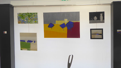 Le deuxième espace d'exposition, avec des tableaux dans des tonalités plus froides, plus hivernales pour la plupart.